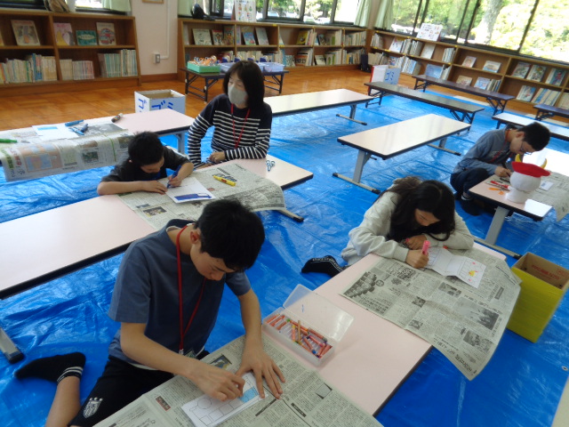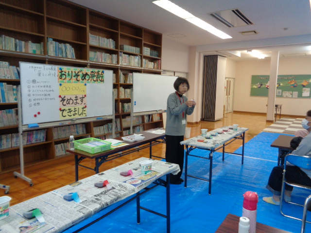 <楽しい折り染めの世界へようこそ><木製ミニチュア椅子を作ろう> <オリジナル透明石けんを作ろう> <木の実でリースを作ろう>