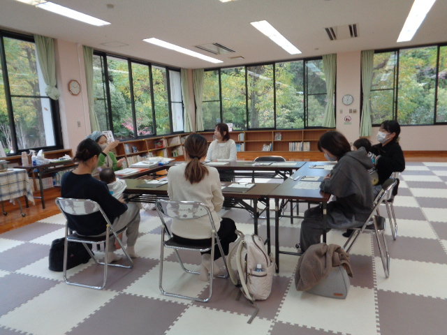 - 生後3か月から6か月の赤ちゃんと保護者のみなさんが集まって、子育ての情報交換や保護者同士の交流の場として開催しています。