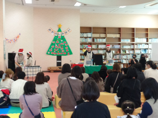 - 火曜日から金曜日(祝日、休館日を除く)11時15分からは親子でふれあい遊びや体操等を実施します。15時からは読み聞かせ(ちいさなおはなし会)を中心に実施します。また、お楽しみ会や誕生会、公園で自然に親しんだり、アリーナでおもいきり体を動かしたりして遊ぶ日もあります。